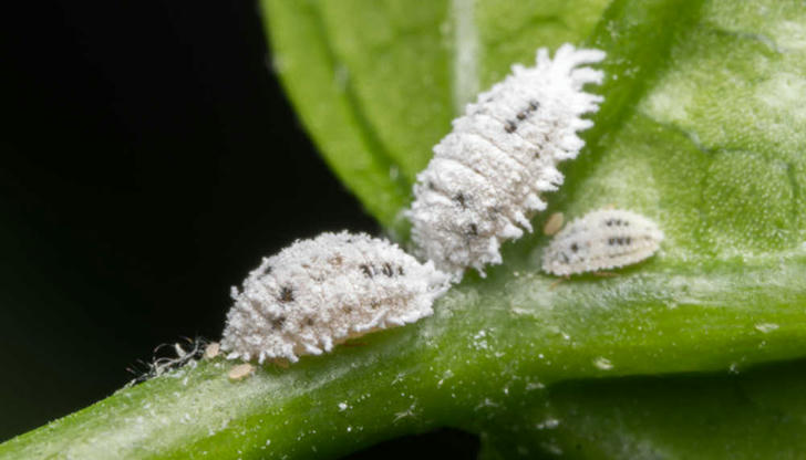 Mealybugs suck plant juices, leading to leaf yellowing, stunted growth, and sticky residue (aka "honeydew") that can invite mold.