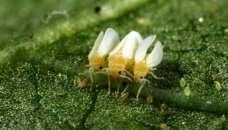 Tiny white, moth-like insects that scatter when you shake the plant. Eggs and larvae often hide on the undersides of leaves.