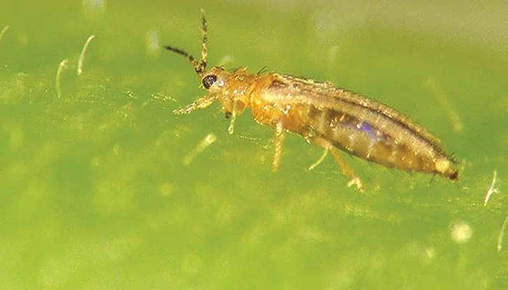 Thrips scrape at plant surfaces and suck the juices out, damaging flowers and foliage. They're small and fast, so they're often hard to spot until the damage is done.