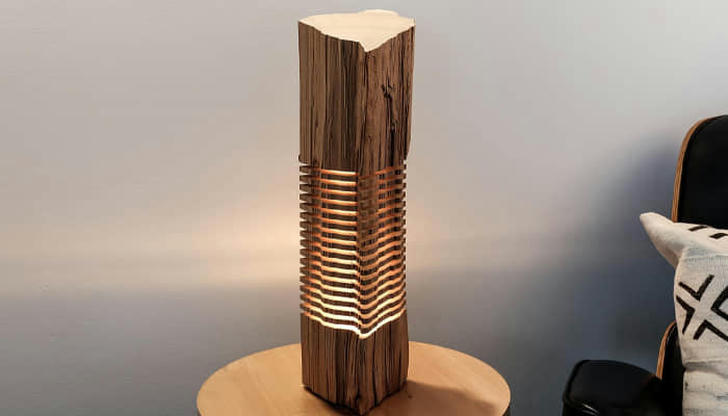 Drill a hole through the block for the wire, sand it smooth, then oil it with tung oil. The light will glow warmly across the grain --- creating a soft, natural centerpiece for your desk or bedside table.