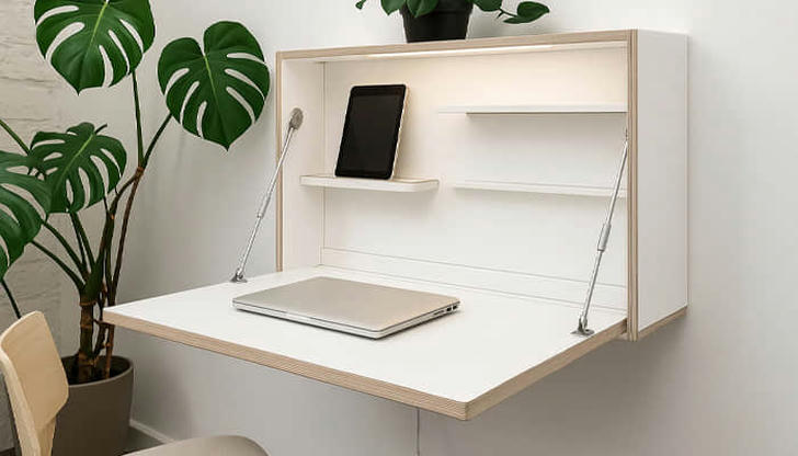 For apartment dwellers or small-home offices, a wall-mounted desk can transform dead space into a minimalist workstation.